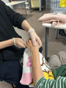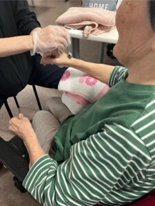 ハンドマッサージ 2025.09.5 未分類 当施設では月に1回、ハンドマッサージの方に来て頂いています。 今日はその様子をご紹介いたします。 食堂に集まれる方が対象になりますが、今回は8名の方に受けて頂きました。 誰かの「手」でマッサージして頂くと、心も一緒にほぐれますよね(#^.^#) ローラーを使っての施術もあります。 施術を受けたご利用者様は気持ちよさそうで、会話にも花が咲いていました🌸 Tweet Share +1 Hatena Pocket RSS feedly Pin it 未分類